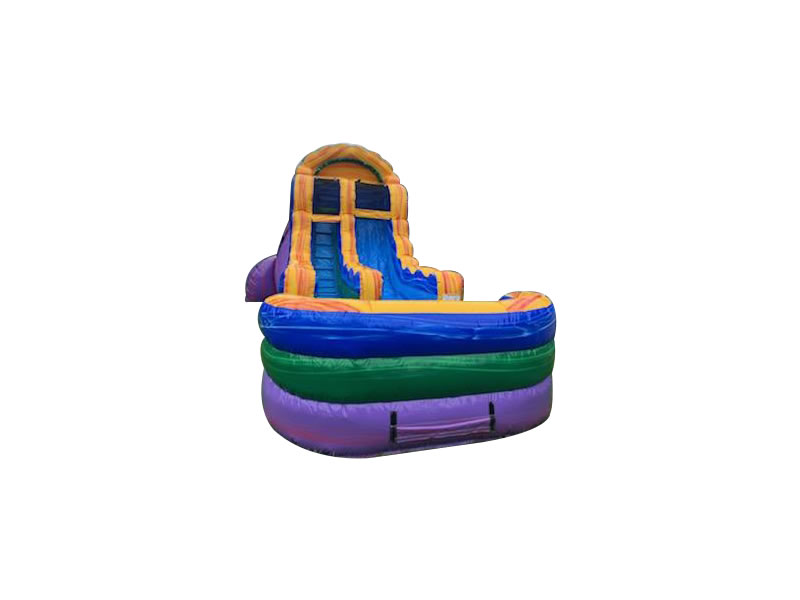 This awesome slide is lots of fun for everyone! Pool free inflatable slide that can be used wet or dry (9′ x 16.9′ x 15′(height))